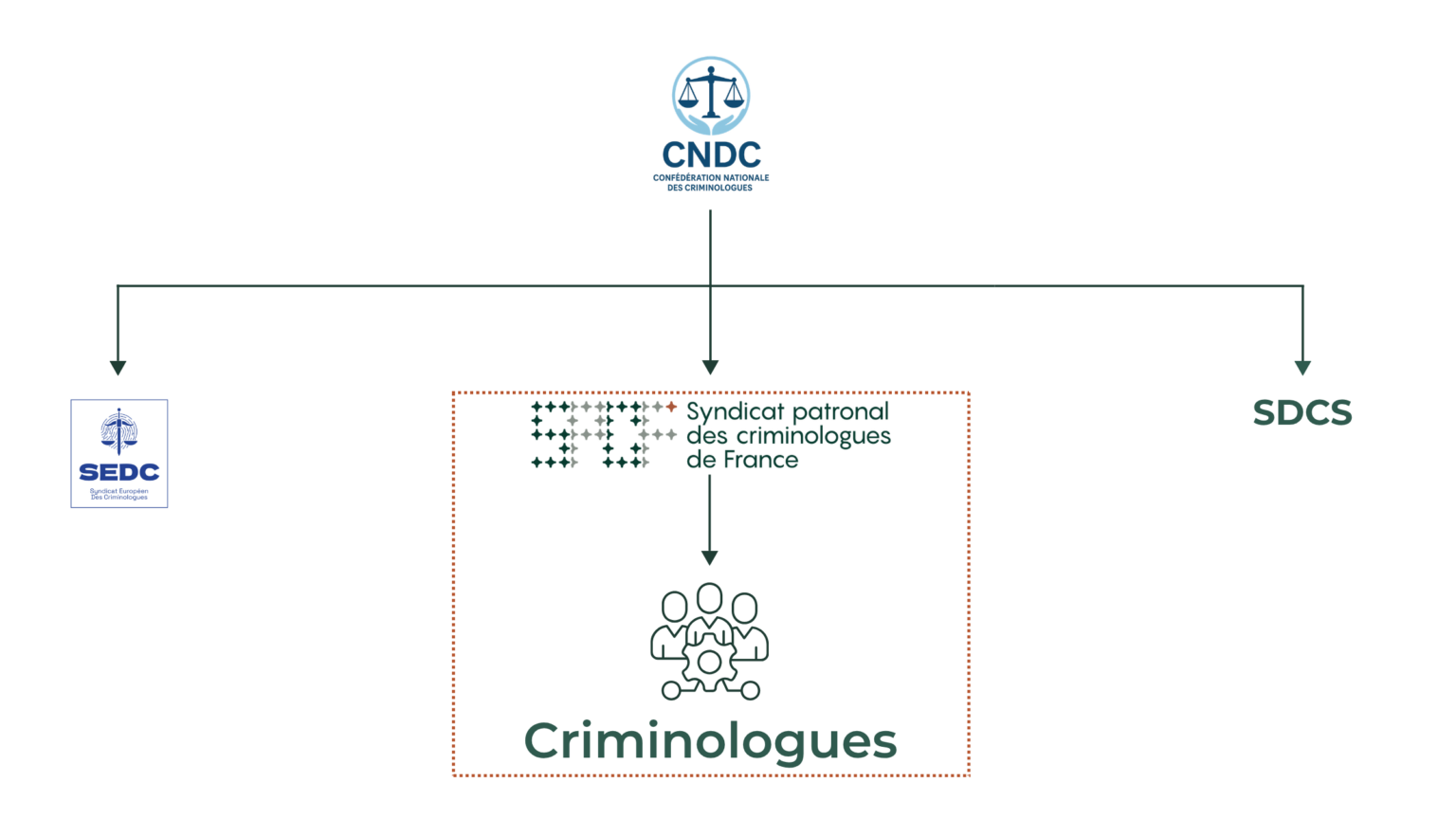 Il compose, avec le Syndicat Européen des Criminologues (SEDC) et le Syndicat des Criminologues Salariés (SDCS), la branche professionnelle de la Confédération Nationale Des Criminologues (CNDC).